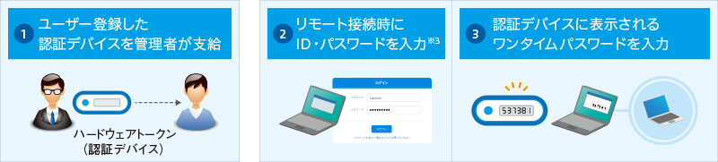 これまでのスマートフォンを使った認証に加えて※2、ハードウェアトークン(認証デバイス)に表示されるワンタイムパスワードを入力してログインする仕組みを追加しました。